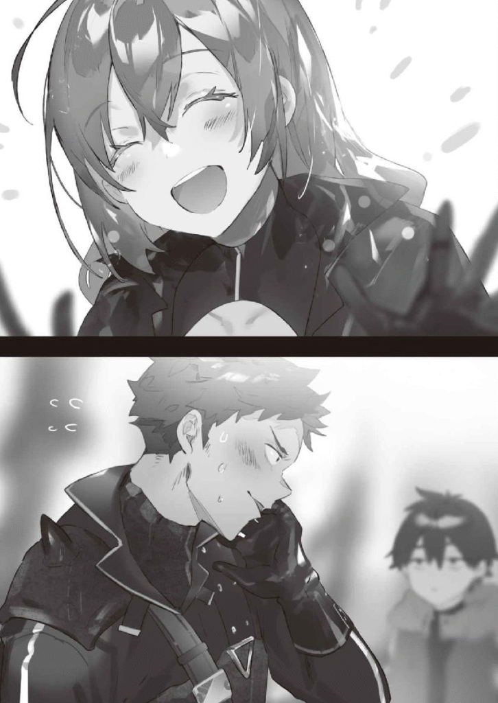 Haruhiro bisa mengerti kenapa Merry tersenyum melihat Yume. Bahkan tatapan hangat dari Bikki Sans pun masuk akal, mengingat dia orang yang baik. Tapi Neal? Melihat Yume sambil memegang dadanya dan melirik dari samping? Itu nggak terduga. Haruhiro jadi penasaran apa yang ada di kepala si pengintai itu.