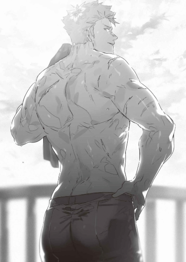 Saat ia menoleh, Takasagi sudah mengangkat kembali katananya ke pundak dan memiringkan kepala ke samping.